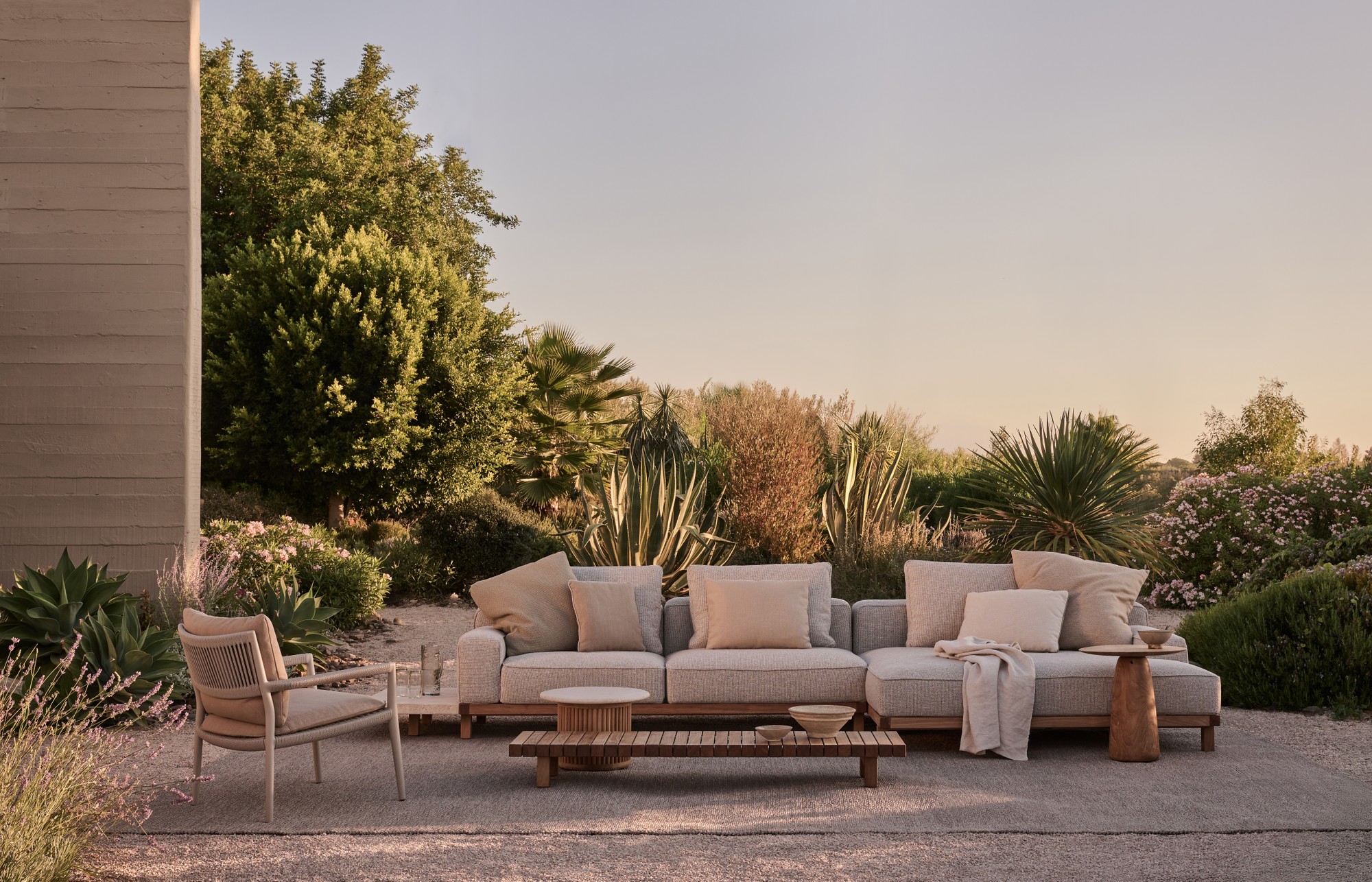 Die Vis À Vis Kollektion aus hochwertigem Plantagenteak verkörpert raffinierte Handwerkskunst und modulare Eleganz. Die weichen, voluminösen Polster werden durch eine charakteristische Paspelierung akzentuiert, die einen dezenten grafischen Rhythmus erzeugt. Das organisch geformte Eckmodul erweitert die modulare Vielseitigkeit des Sofas durch einen markanten 30°-Winkel. So entstehen organisch geformte Arrangements, die sich nahtlos mit weiteren Sofaelementen verbinden oder als eigenständige Insel der Entspannung wirken. Entwickelt für Komfort und Flexibilität ermöglicht der modulare Charakter eine harmonische Integration mit dem Sofa und anderen Elementen der Kollektion – für stimmige Outdoor-Lounge-Kompositionen.