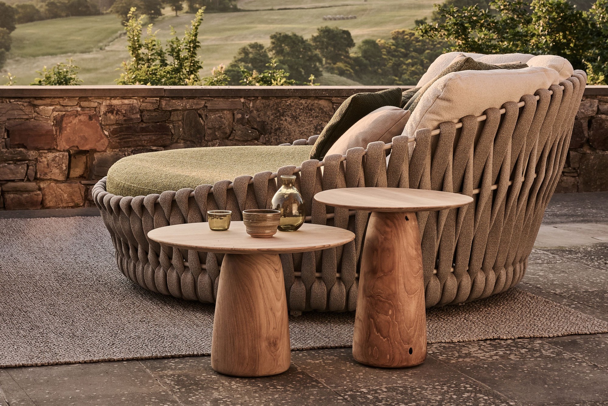 De Tosca collectie is tegelijk warm en uitnodigend, chique en intrigerend. Het was de eerste keer dat Tribù een vrouwelijke ontwerpster in de arm nam. Vrouwelijkheid en emotie waren dan ook de sleutelwoorden bij het ontwerpen van deze exclusieve buitenmeubelcollectie. Een elegante zitkuip in gepoederlakt inox wordt gedragen door ranke, taps uitlopende pootjes en is bekleed met extra breed, verticaal vlechtwerk. Het materiaal voor dit vlechtwerk kan zonder meer als innovatief omschreven worden: schuim wordt overtrokken met een kokervormige 'kous', gebreid uit textileen en polyolefine. Het materiaal ziet er verrassend natuurlijk uit, maar is toch 100% weerbestendig. Het Tosca daybed vormt de ideale setting om samen te genieten, vooral dankzij de comfortabele outdoor kussens.
