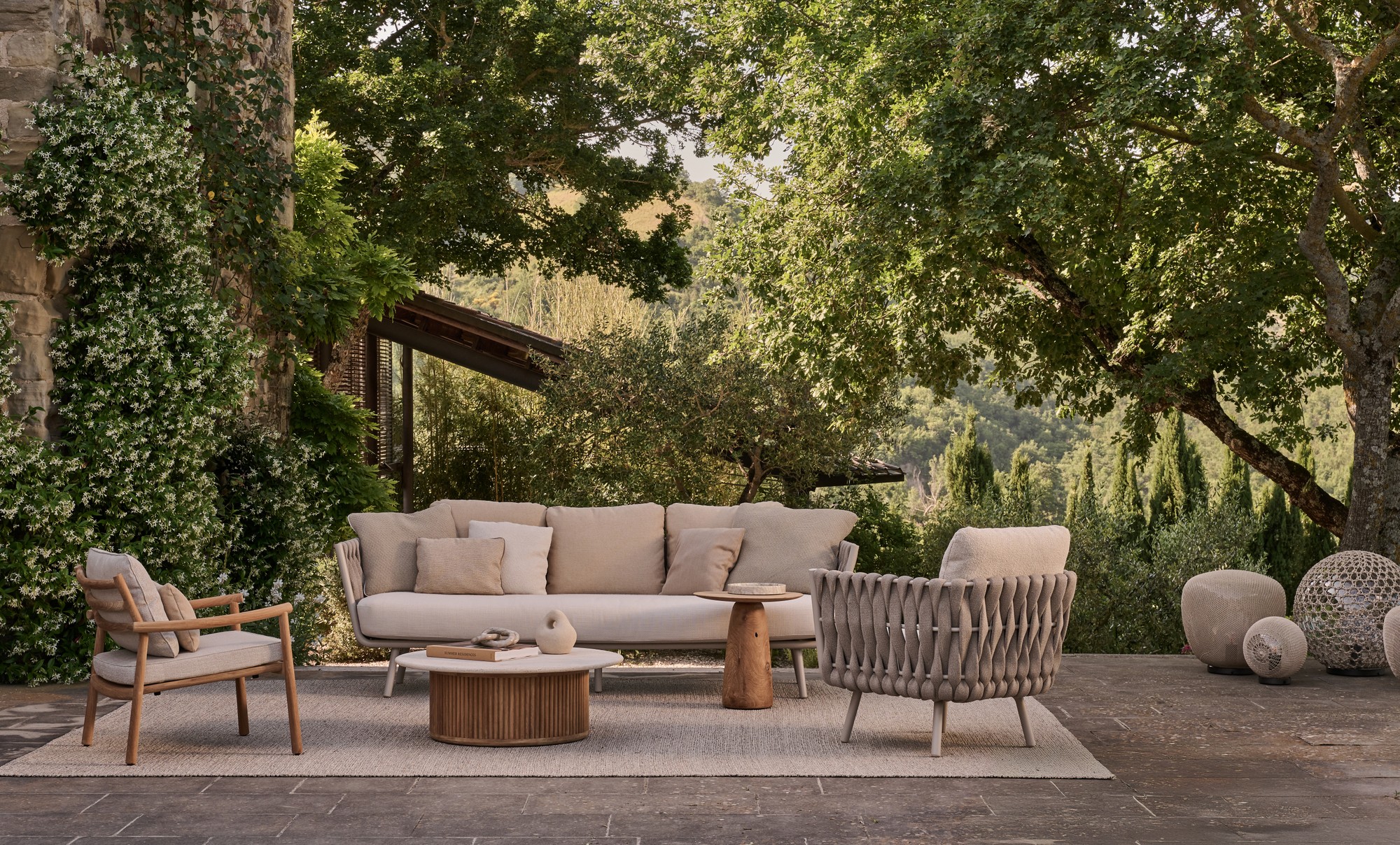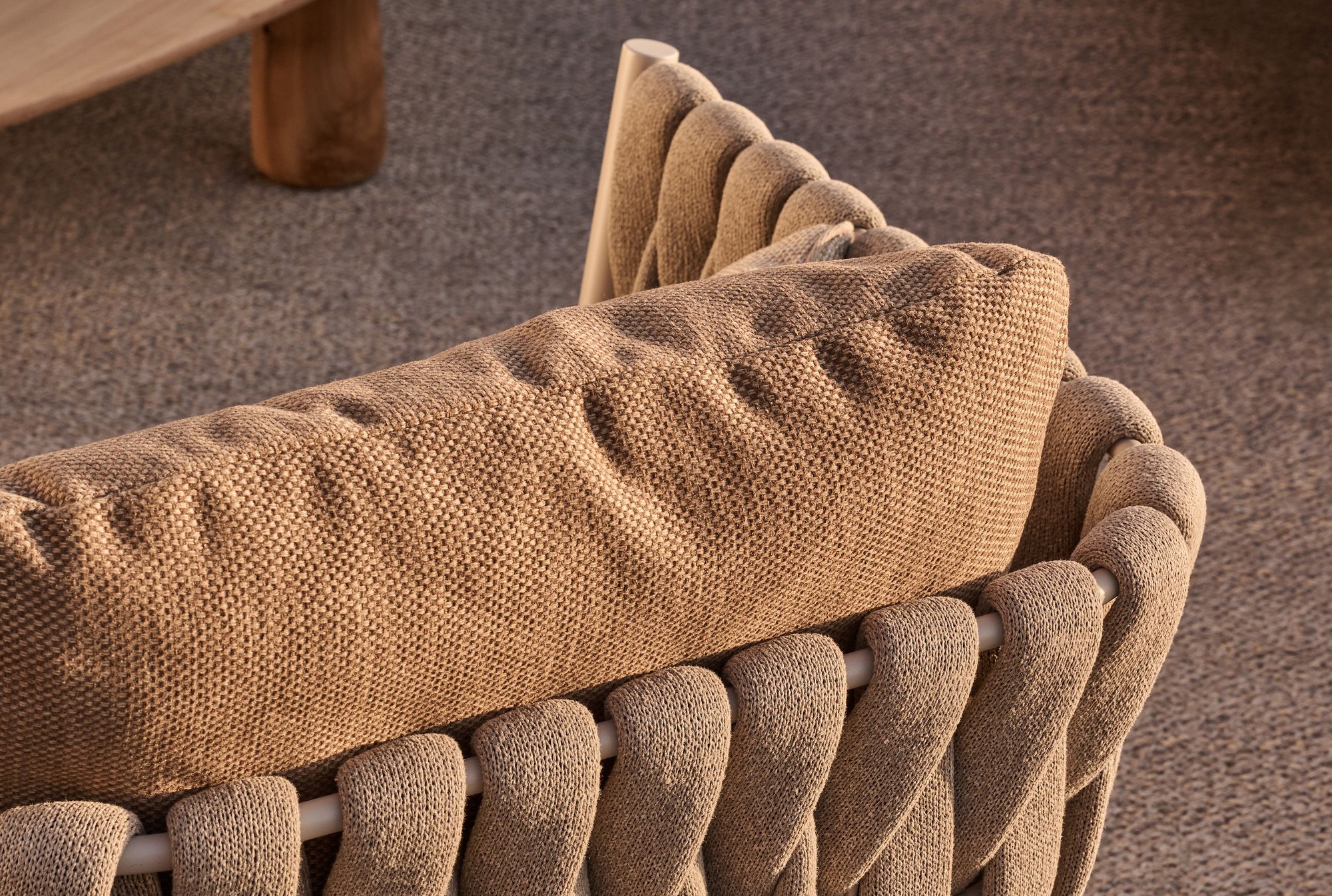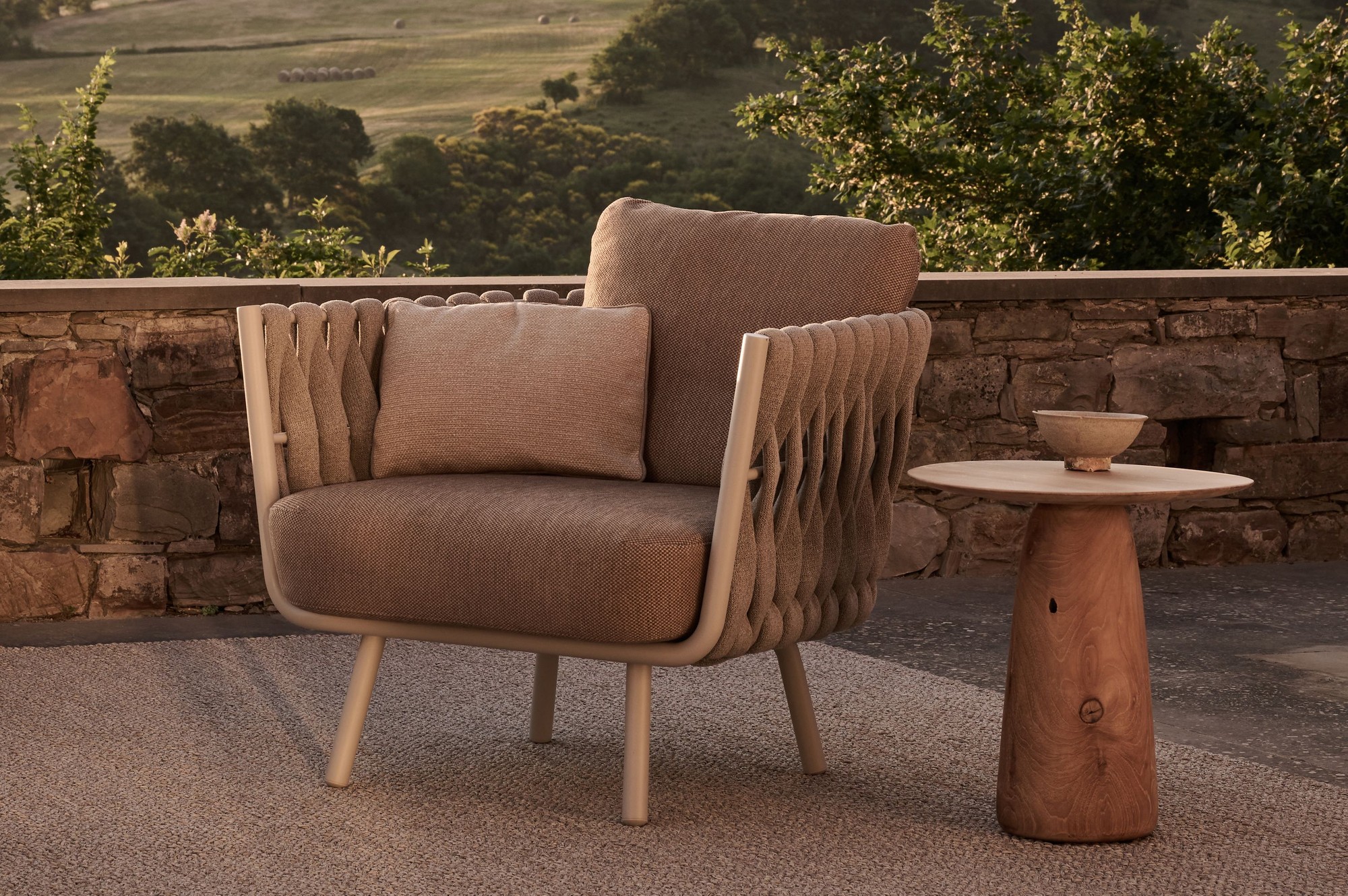 De Tosca collectie is tegelijk warm en uitnodigend, chique en intrigerend. Het was de eerste keer dat Tribù een vrouwelijke ontwerpster in de arm nam. Vrouwelijkheid en emotie waren dan ook de sleutelwoorden bij het ontwerpen van deze exclusieve buitenmeubelcollectie. Een elegante zitkuip in gepoederlakt inox wordt gedragen door ranke, taps uitlopende pootjes en is bekleed met extra breed, verticaal vlechtwerk. Het materiaal voor dit vlechtwerk kan zonder meer als innovatief omschreven worden: schuim wordt overtrokken met een kokervormige 'kous', gebreid uit textileen en polyolefine. Het materiaal ziet er verrassend natuurlijk uit, maar is toch 100% weerbestendig. Het zitcomfort van de clubzetel is bovendien erg aangenaam, dankzij de comfortabele outdoor kussens.
